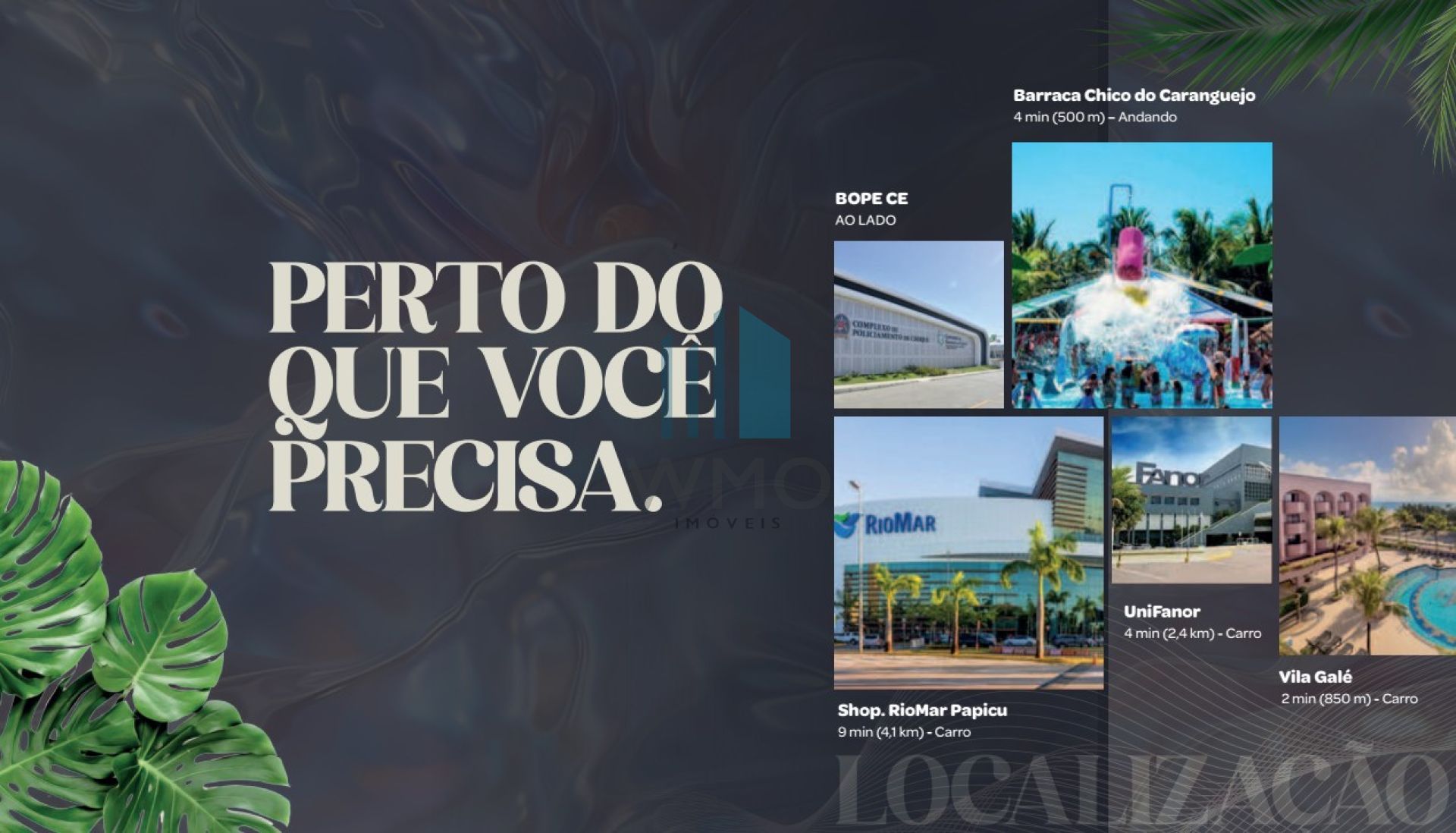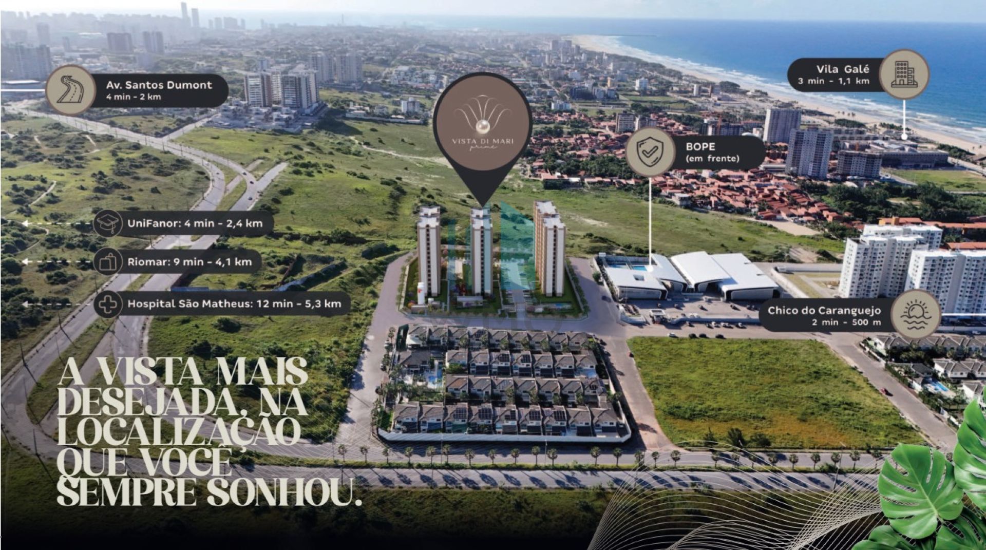 A 04 minutos da Barraca Chico do Caranguejo, Colégio Cívico Militar e Unifanor, a 9 minutos do Shopping Rio Mar Papicu, ao lado do BOPE e a 12 minutos do Hospital São Matheus Praia e a 7 minutos do Supermercado Guará.